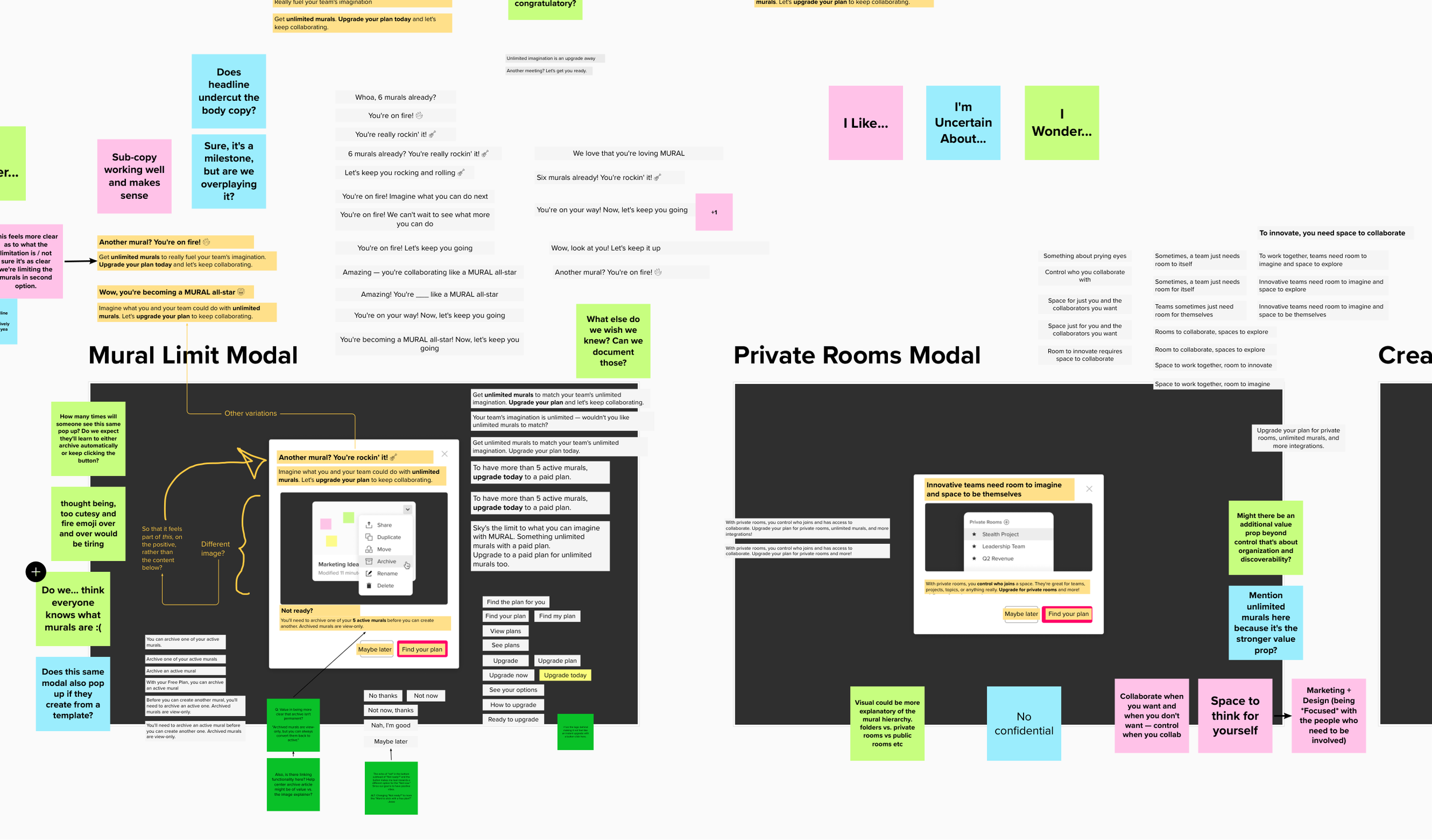Messaging needed to encourage upgrades by people who valued Mural while not pushing away users who, for whatever reason, weren’t yet ready to buy.
